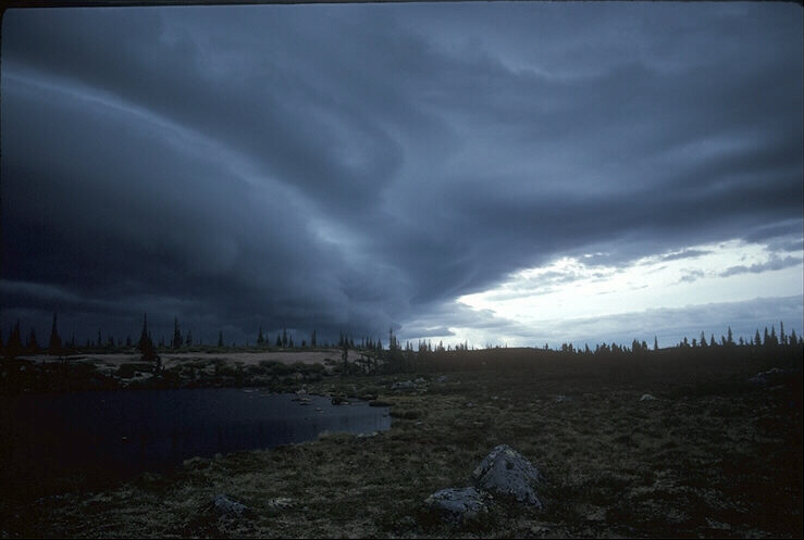 08/22/2021 12:53 PM Brilliant blue, evergreen, dark Warm Soil Quiet, still, looking or searching. Island of some sort. Lots of trees. Tall. In forest.