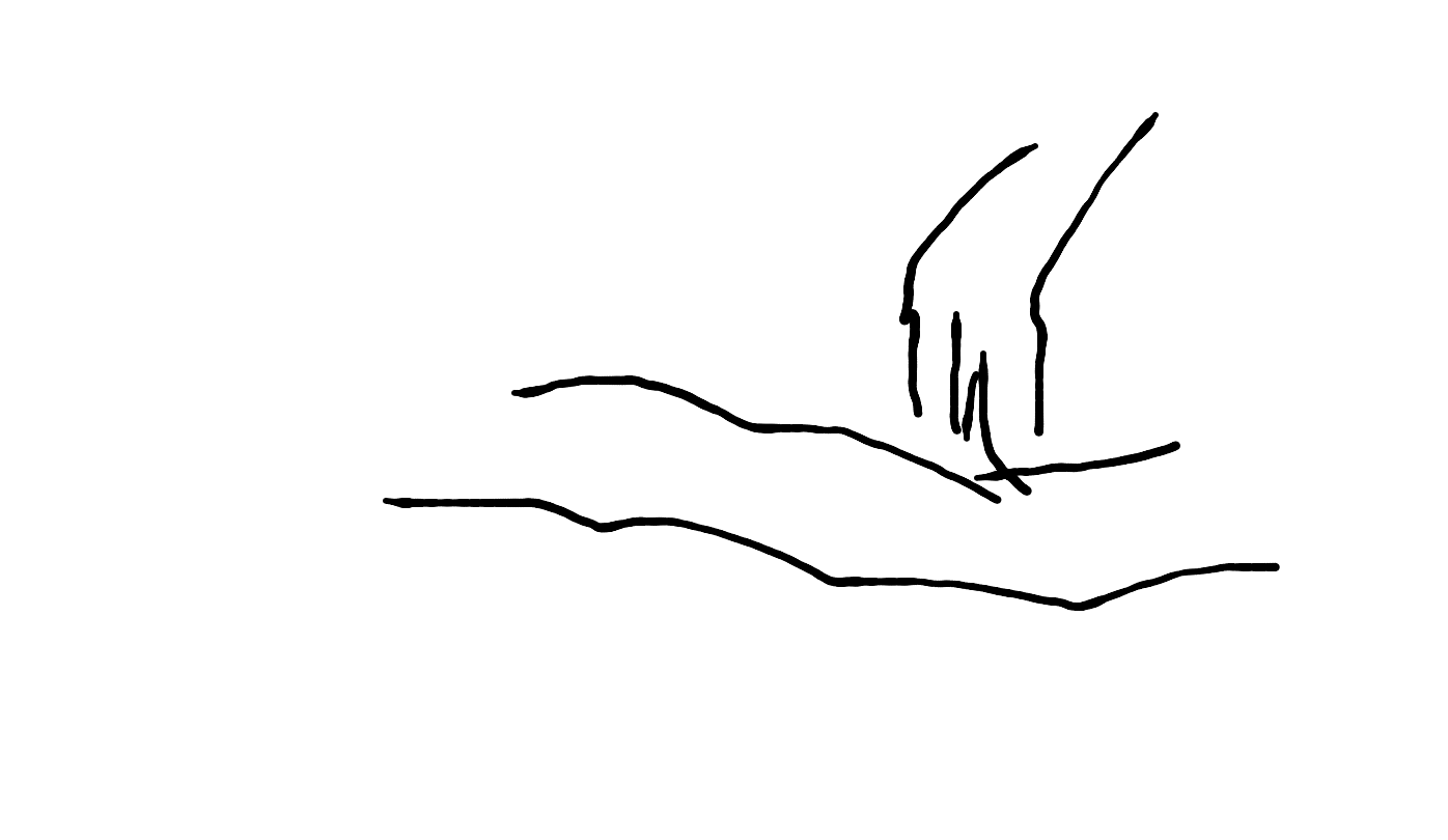 maybe a pond with green (algae, lilypads?) in bottom left